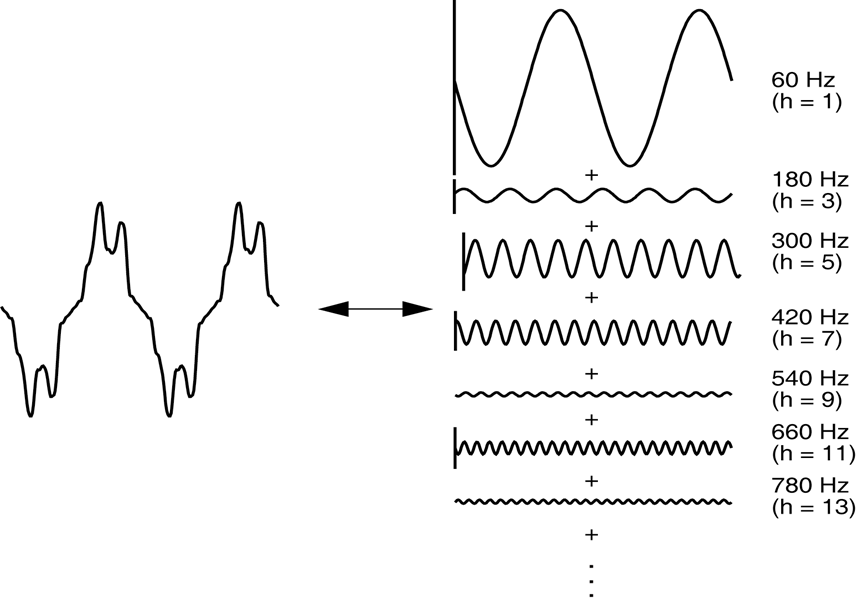 電力系統中常見的諧波源(非線性設備)包括整流設備、電力電子設備、氣體放電燈管、可飽和電抗、電弧爐、電弧熔焊機、電子與電腦設備等,這些諧波源的共同特色之一、就是電流的波形為非正弦的週期性波。