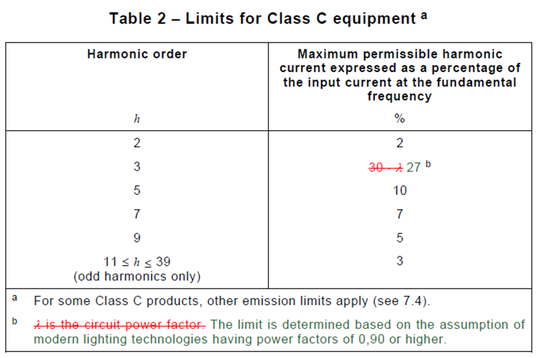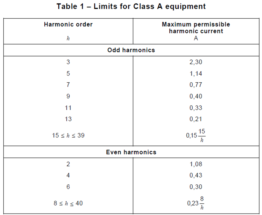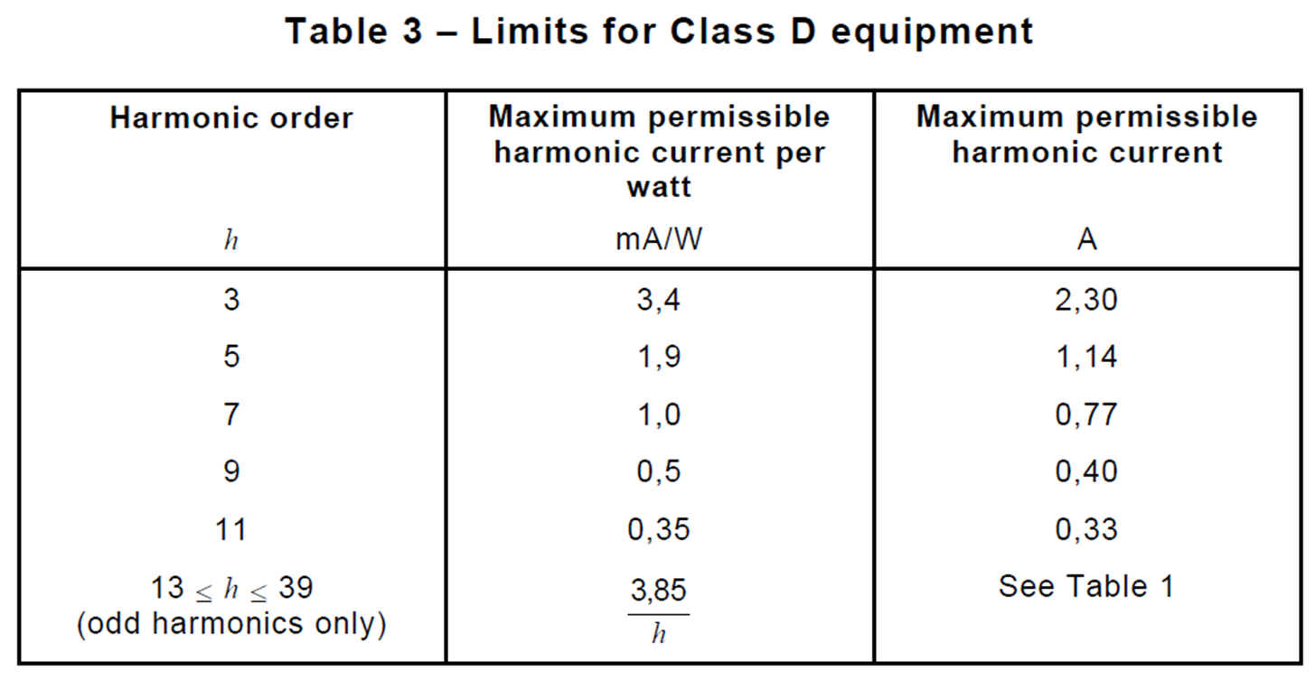- 在最大負載下,諧波電流不得超過Table 2的限制值。