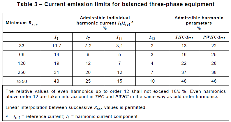 - 諧波電流不得超過Table 3的第2欄要求。