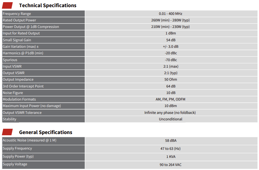 前面板指示燈可指示過溫和射頻聯鎖操作。