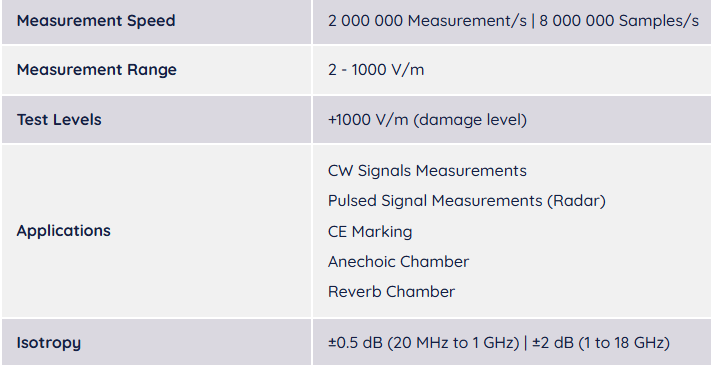 RadiSense® RSS3018U 是一款專為需要高速測量的 EMC/RF 應用而設計的場探頭。