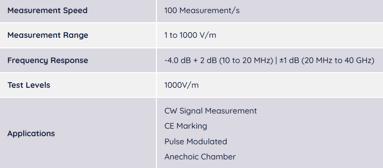 RadiSense® 40 具有非常寬的頻率範圍,能夠以較大的動態範圍進行精確的各向同性電場強度測量。