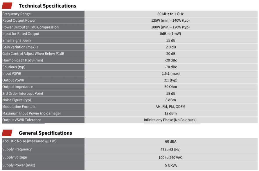我們的高功率密度設計支援強大的 125 瓦 A 類放大器,其工作頻率範圍為 80 MHz 至 1 GHz,並整合在一個精簡的 3U 機箱內。